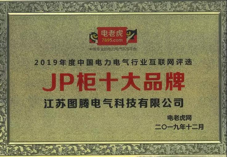 2019年12月19日,由電老虎網聯合行業專家、國內主流廠家等共同舉辦的年度電力盛會“2019年第二屆中國電力電氣創新大會”于南京麗湖雅致酒店盛大開幕。江蘇圖騰電氣科技有限公司受邀參加本次大會,并榮膺“JP柜十大品牌”稱號。