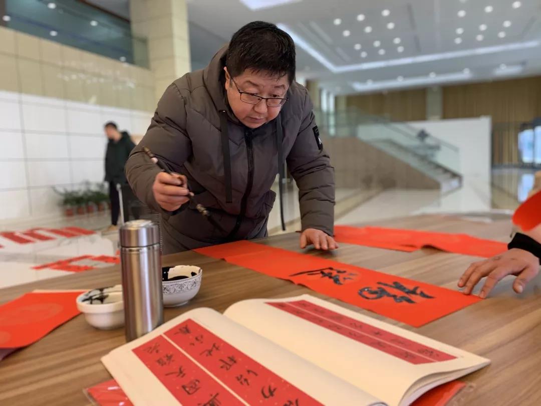 揮毫現場,一幅幅春聯在書法專家的筆下誕生,滿含喜慶、祝福寓意的春聯贏得了在場職工群眾的一致稱贊。