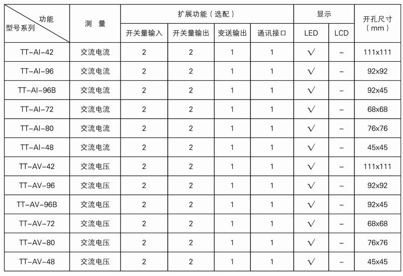 TT單相系列數顯表具有高精度測量單相交流電流或直流電流,并提供數碼管顯示,本地數據查詢,多種外形選擇,滿足不同柜體電氣回路的要求等功能。