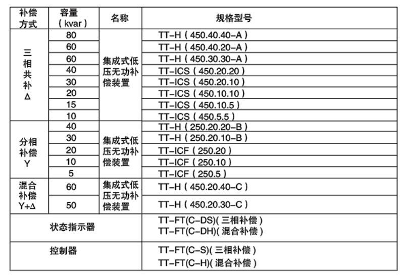 TT系列集成式低壓無功補(bǔ)償裝置產(chǎn)品選型表